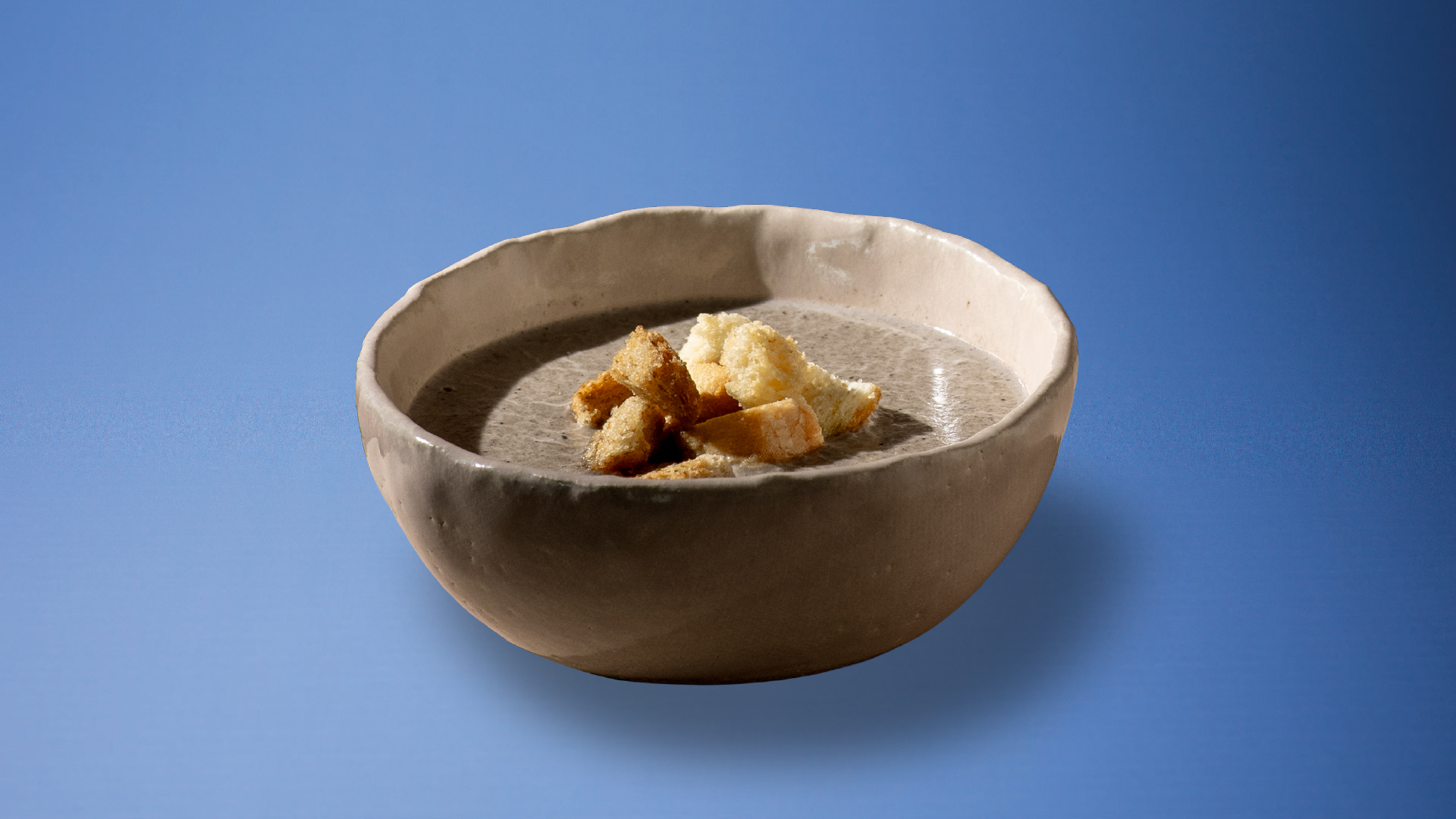 Creamy mix mushrooms soup with fresh thyme. Served with croutons.