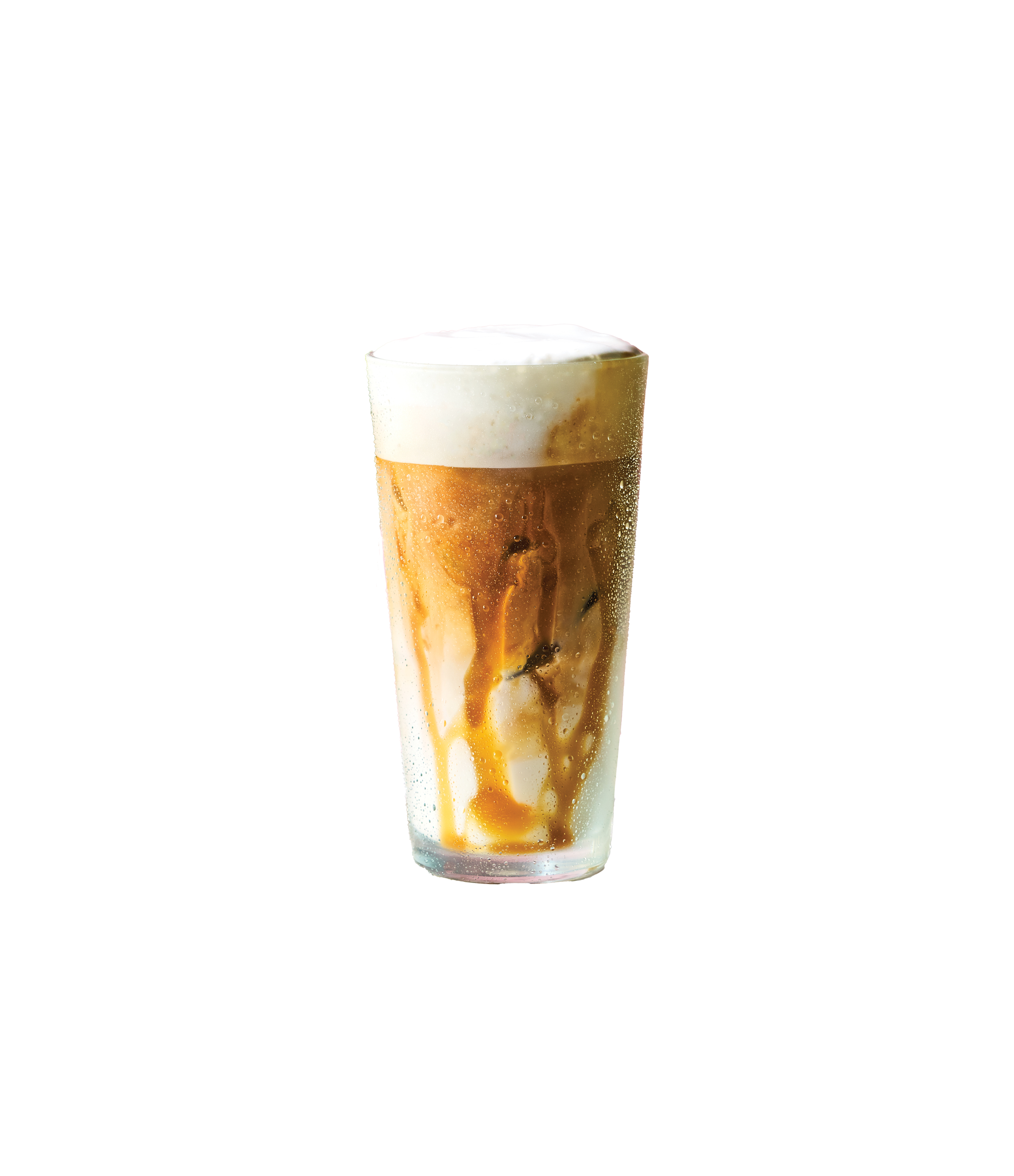 Vår egen prisbelönta espresso över is och mjölk med saltkaramellsirap och toppad med saltkaramellskum.
