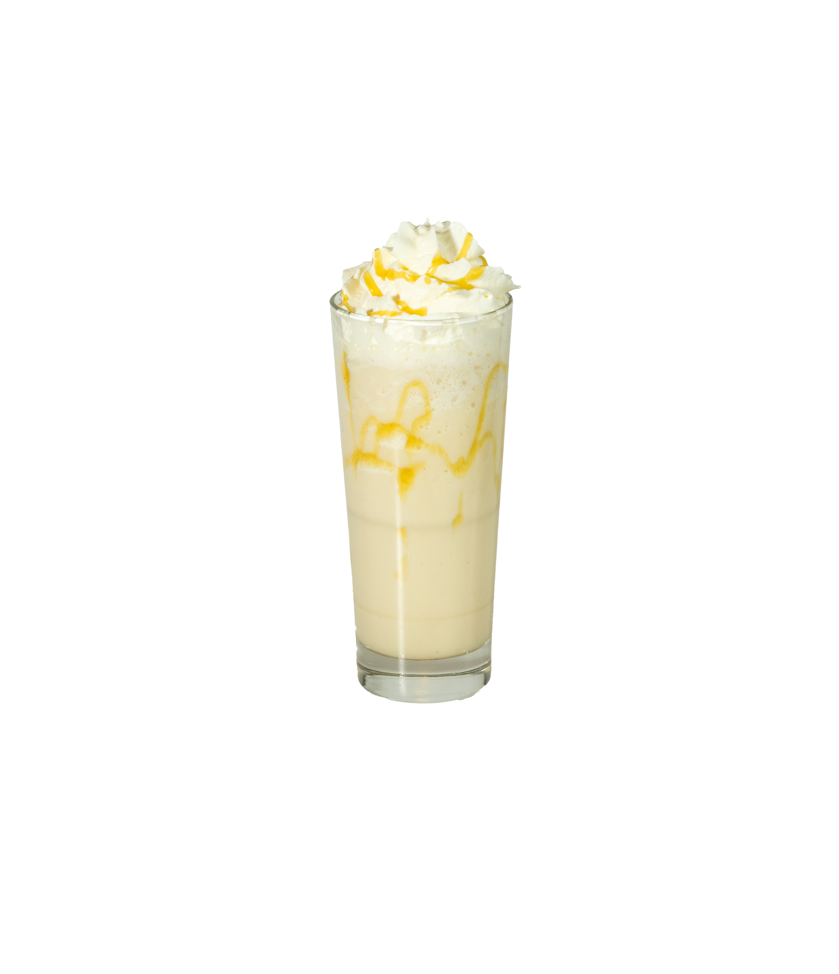 Frappepulver med mango pure, ananas sirap, kokosdryck & toppad med vegansk grädde.