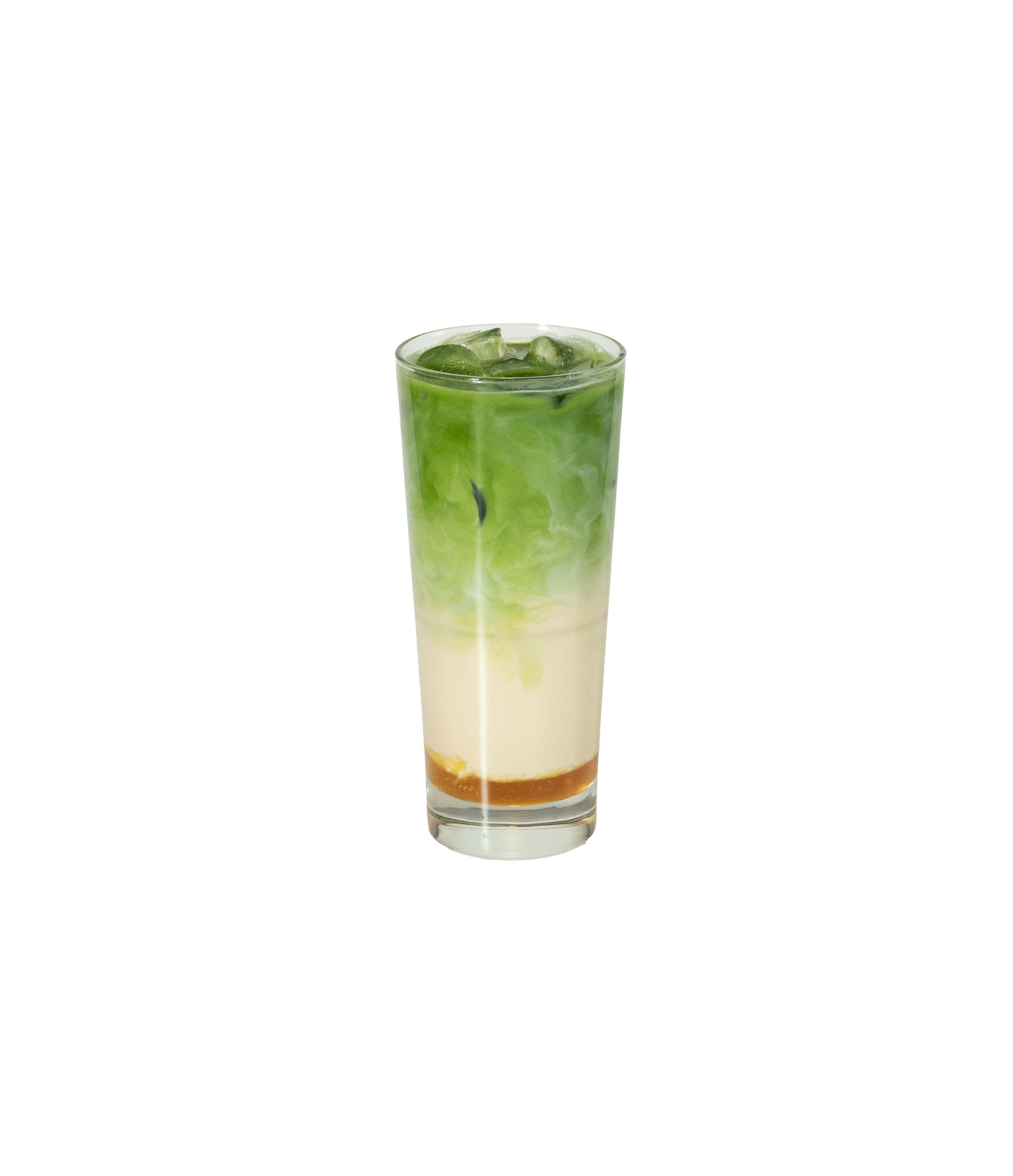 Svalkande dryck med japanskt te smaksatt med vanilj syrup