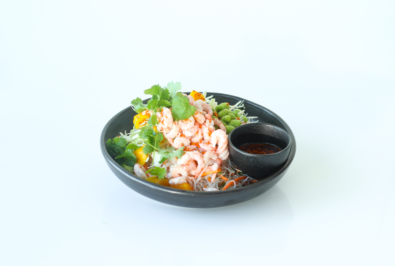 Sallad direkt från vårt kök. Räkor, glasnudlar, mango, morötter och...