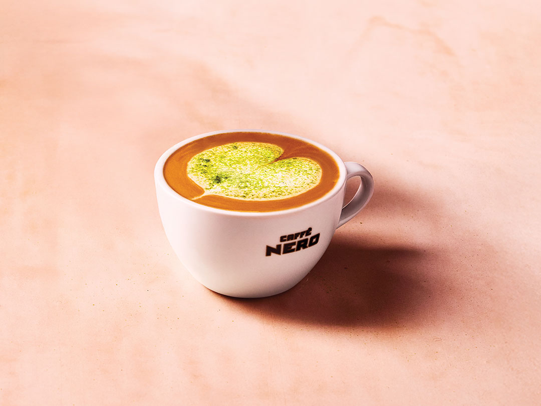 Antep fıstığı, espresso ve buharla ısıtılmış süt üzerine...