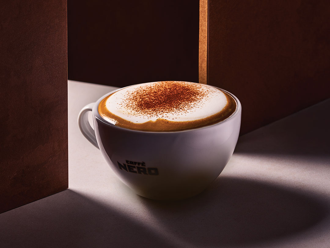 Benzersiz espressomuzun, buharla ısıtılmış süt ve beyaz çikolata...