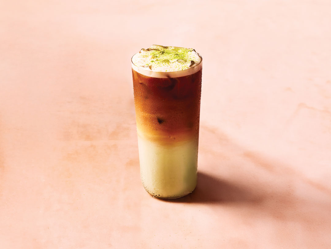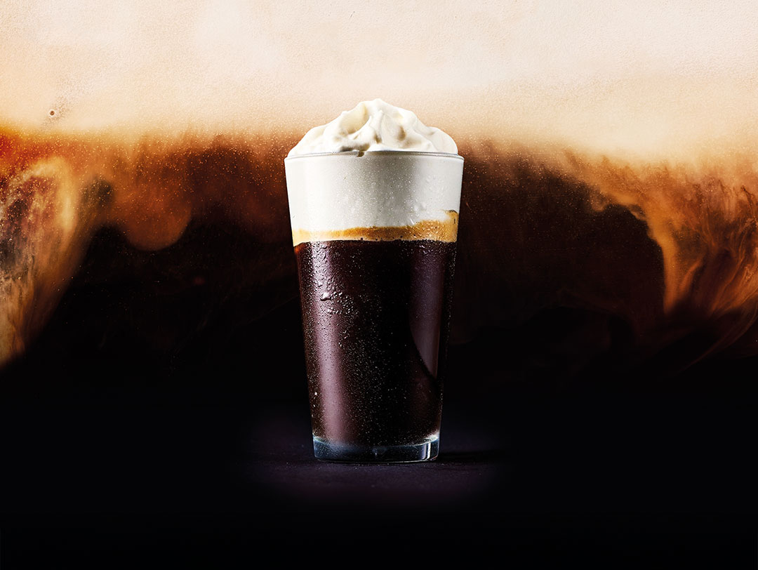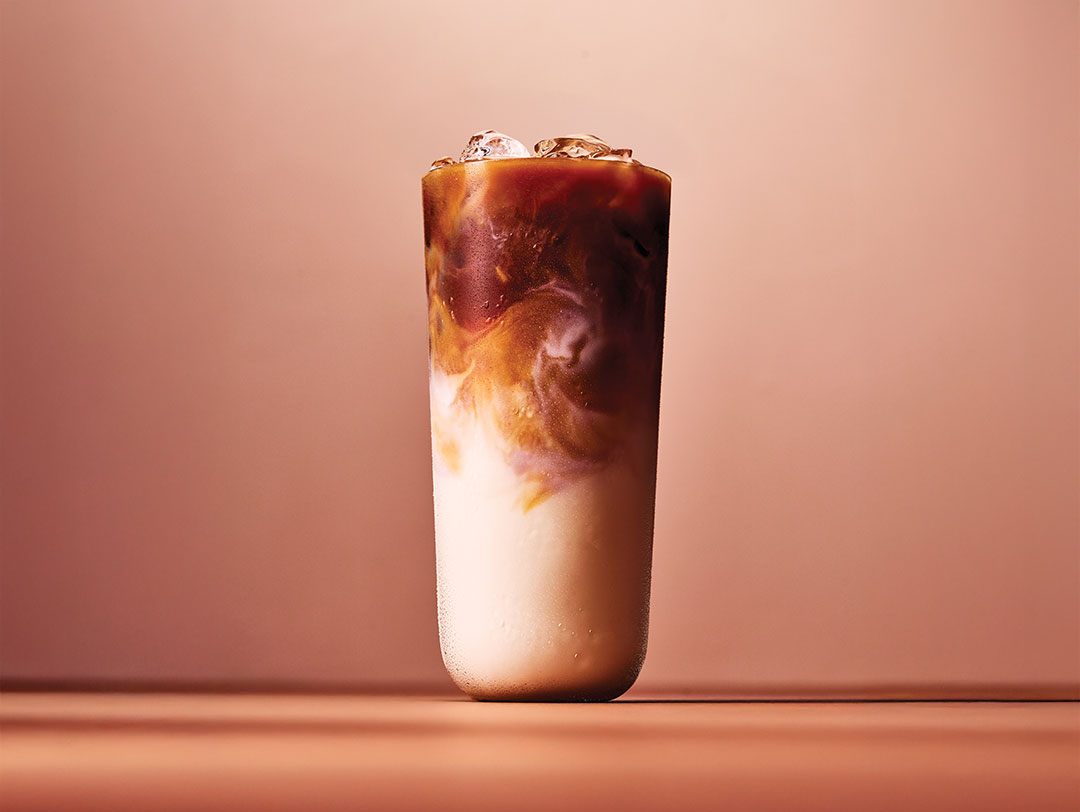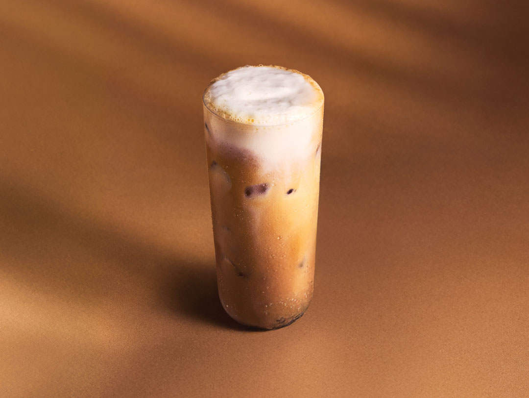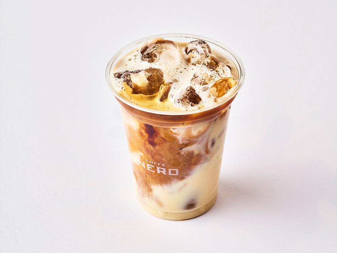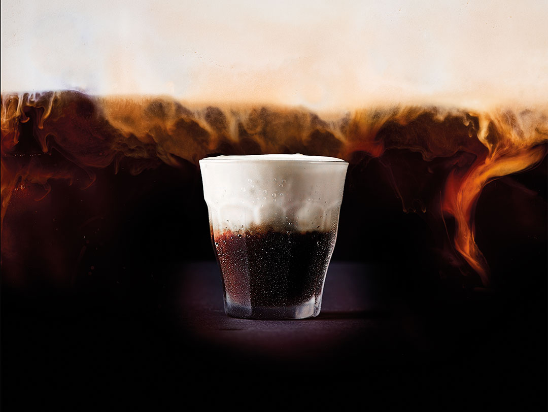 Buzlu sütün üzerine dökülen köpüklü Nero Classico espresso