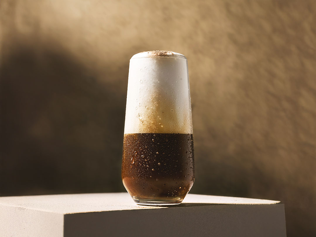 Benzersiz espressomuzun, su ve buz küpleriyle birleşimi.
